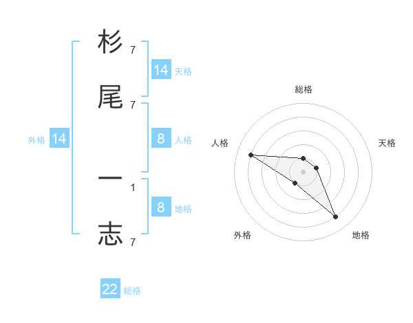 杉尾 一志さんの総格は22画の1点!