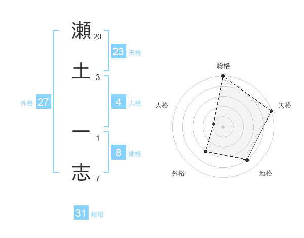 瀬土 一志さんの総格は31画の5点!