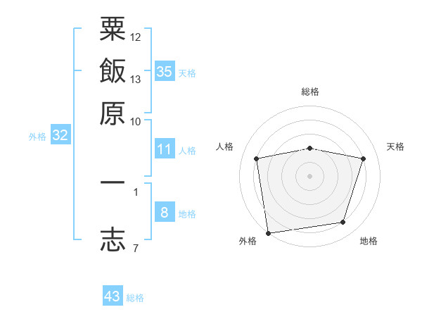 粟飯原 一志さんを姓名の画数から五運を鑑定