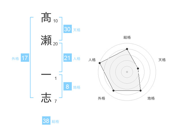 髙瀬 一志さんの総格は38画の4点!
