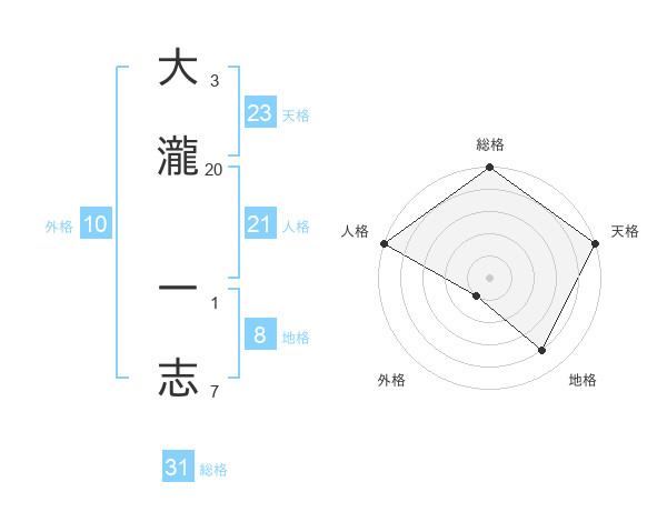 大瀧 一志さんの天格は23画の5点!