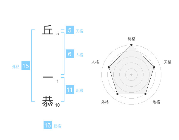 丘 一恭さんの総格は16画の5点!