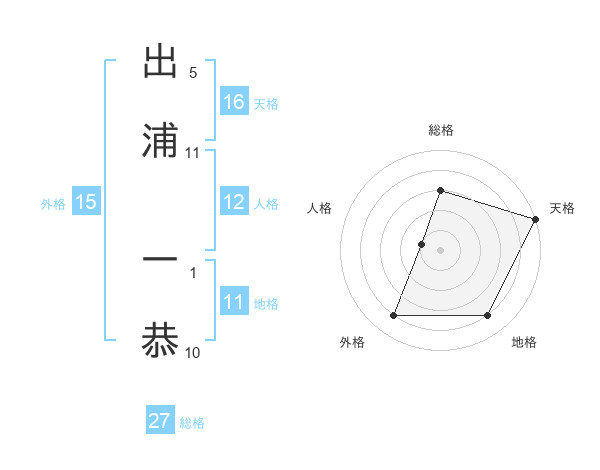 出浦 一恭さんの総格は27画の3点!