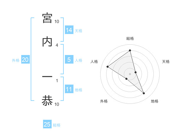 宮内 一恭さんの総格は25画の4点!