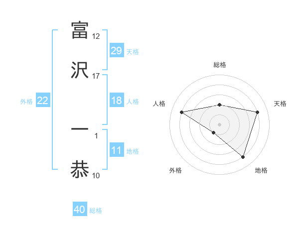 富沢 一恭さんを姓名の画数から五運を鑑定