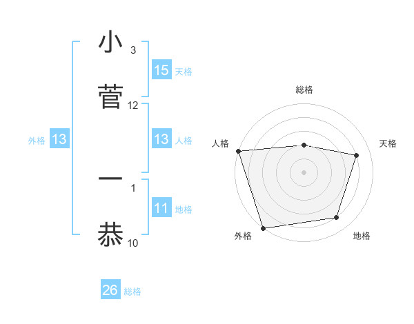 小菅 一恭さんの外格は13画の5点!