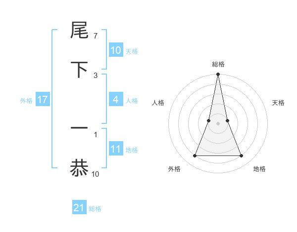 尾下 一恭さんを姓名の画数から五運を鑑定