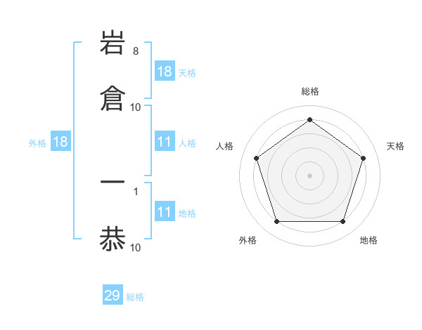 岩倉 一恭さんを姓名の画数から五運を鑑定