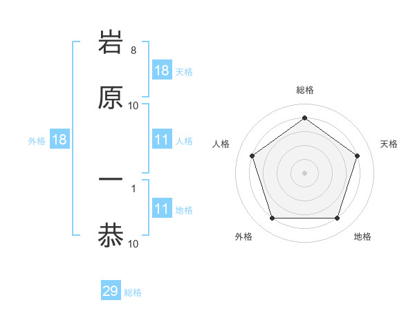 岩原 一恭さんを姓名の画数から五運を鑑定