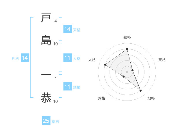 戸島 一恭さんを姓名の画数から五運を鑑定