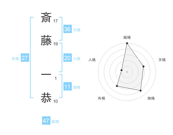 斎藤 一恭さんを姓名の画数から五運を鑑定