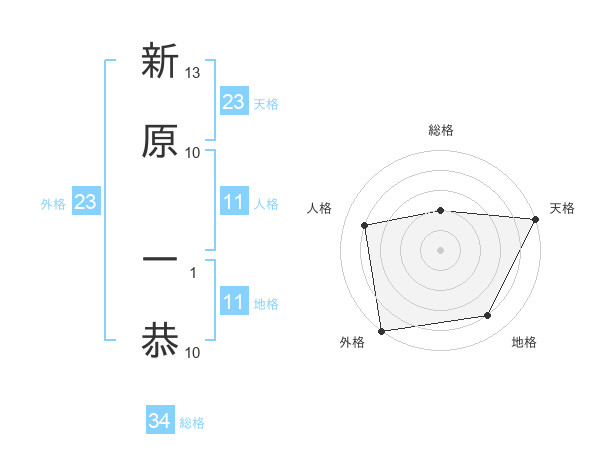 新原 一恭さんの天格は23画の5点!