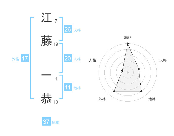 江藤 一恭さんの総格は37画の5点!