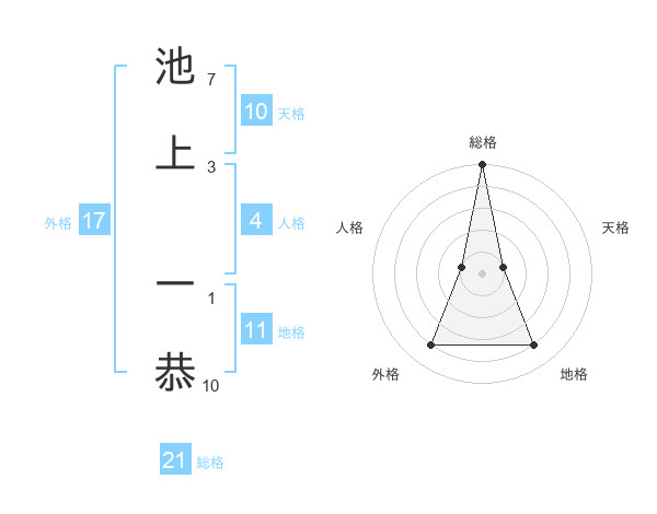 池上 一恭さんの総格は21画の5点!