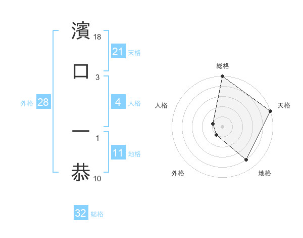 濱口 一恭さんの総格は32画の5点!