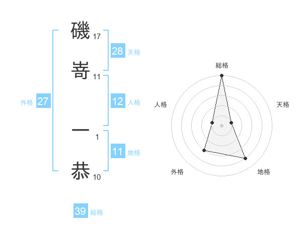 磯嵜 一恭さんを姓名の画数から五運を鑑定