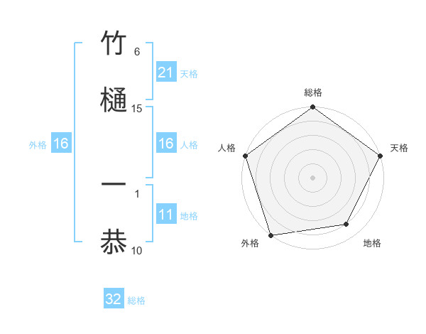 竹樋 一恭さんを姓名の画数から五運を鑑定