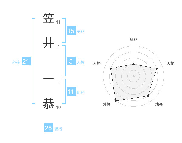 笠井 一恭さんを姓名の画数から五運を鑑定