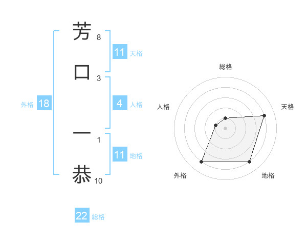 芳口 一恭さんを姓名の画数から五運を鑑定