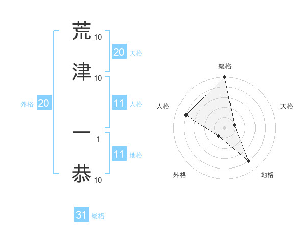 荒津 一恭さんの総格は31画の5点!
