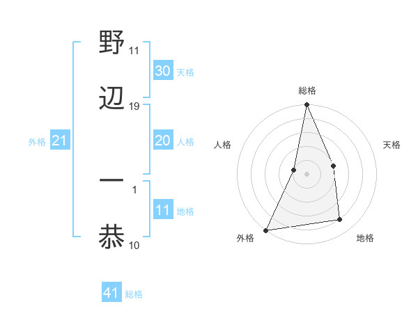 野辺 一恭さんの総格は41画の5点!