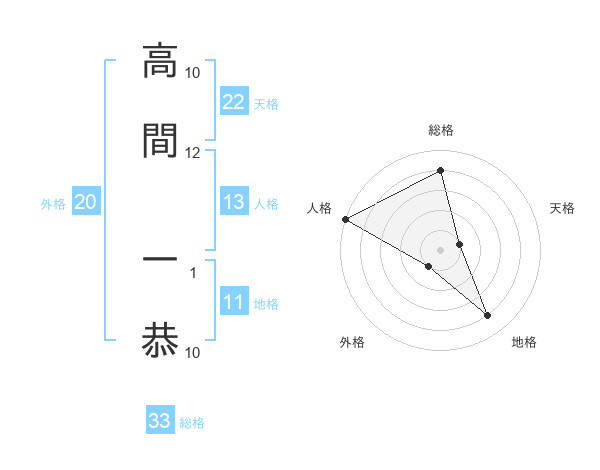 高間 一恭さんの総格は33画の4点!