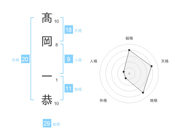 髙岡 一恭さんの総格は29画の4点!