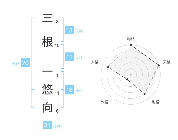 三根 一悠向さんを姓名の画数から五運を鑑定