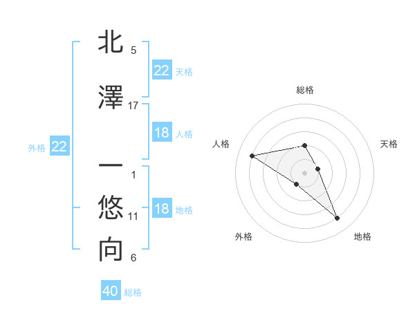 北澤 一悠向さんを姓名の画数から五運を鑑定