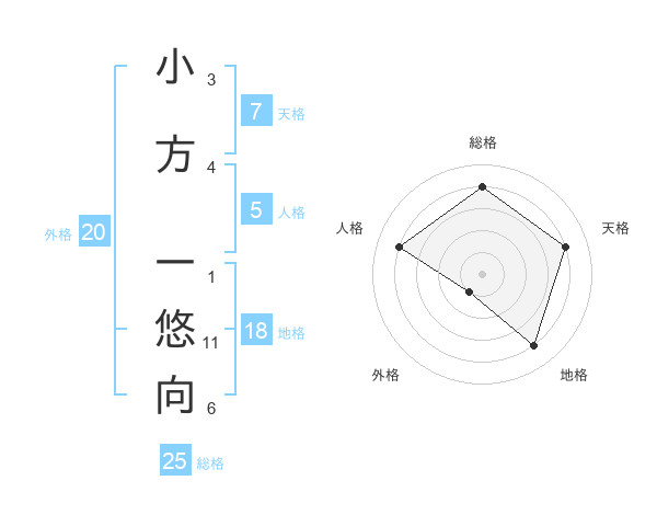 小方 一悠向さんの総格は25画の4点