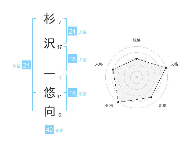 杉沢 一悠向さんの天格は24画の5点!