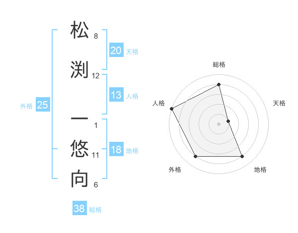 松渕 一悠向さんを姓名の画数から五運を鑑定