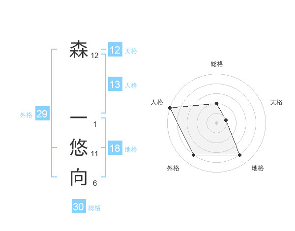 森 一悠向さんの総格は30画の2点!