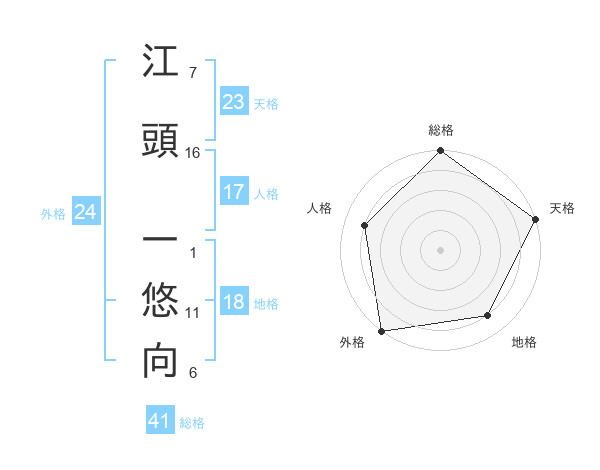 江頭 一悠向さんを姓名の画数から五運を鑑定