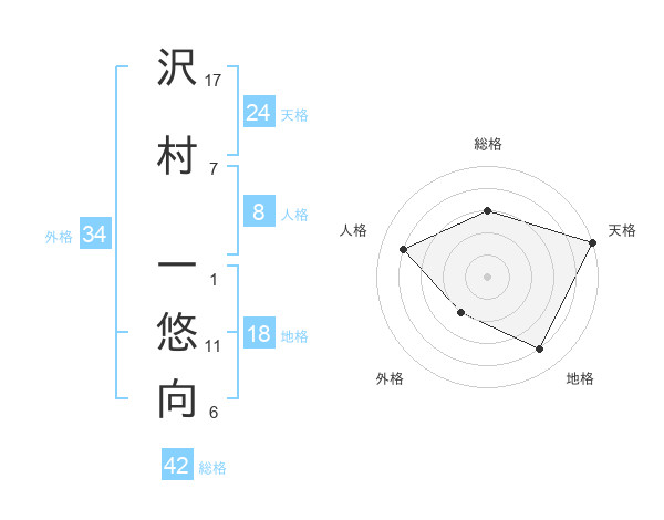 沢村 一悠向さんの総格は42画の3点!