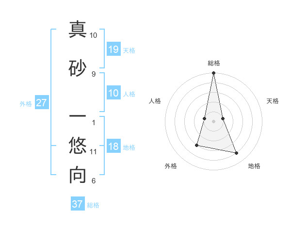 真砂 一悠向さんの総格は37画の5点!