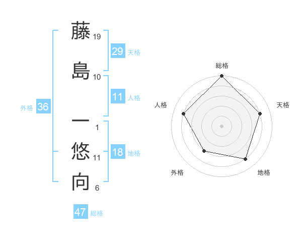 藤島 一悠向さんの総格は47画の5点!