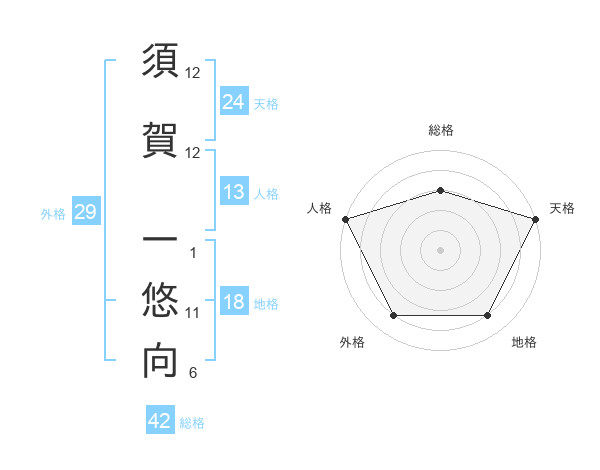 須賀 一悠向さんを姓名の画数から五運を鑑定