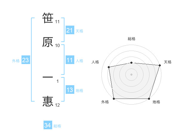 笹原 一惠さんを姓名の画数から五運を鑑定