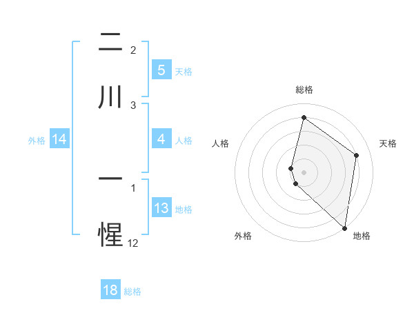 二川 一惺さんの地格は13画の5点!