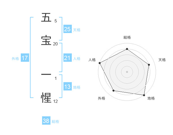 五宝 一惺さんの総格は38画の4点!