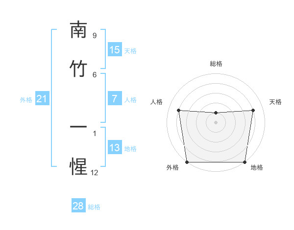 南竹 一惺さんを姓名の画数から五運を鑑定