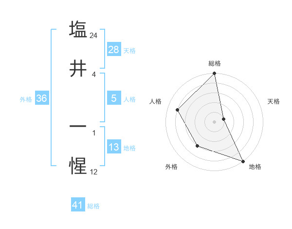 塩井 一惺さんを姓名の画数から五運を鑑定
