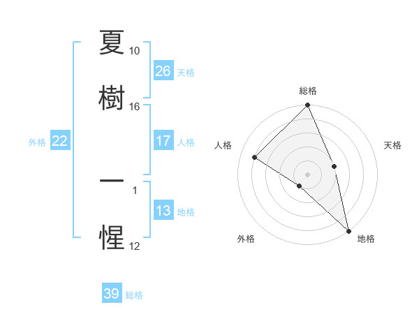 夏樹 一惺さんを姓名の画数から五運を鑑定