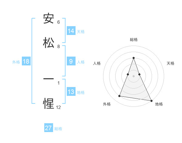 安松 一惺さんの総格は27画の3点!