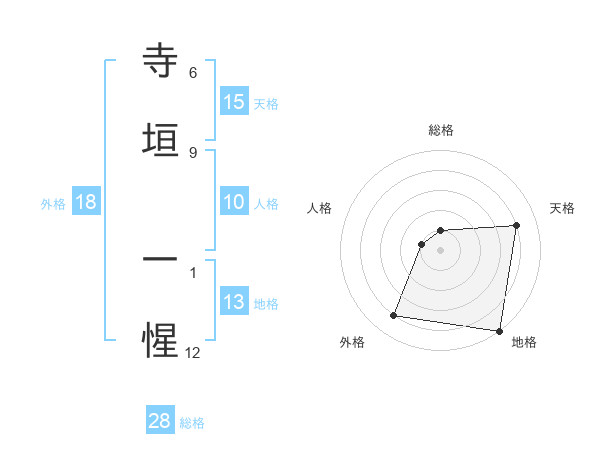 寺垣 一惺さんを姓名の画数から五運を鑑定