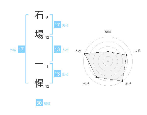 石場 一惺さんの地格は13画の5点!