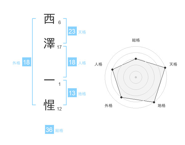 西澤 一惺さんを姓名の画数から五運を鑑定