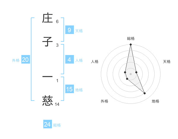 庄子 一慈さんの総格は24画の5点!