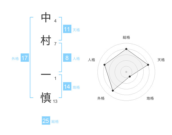 中村 一慎さんの総格は25画の4点!